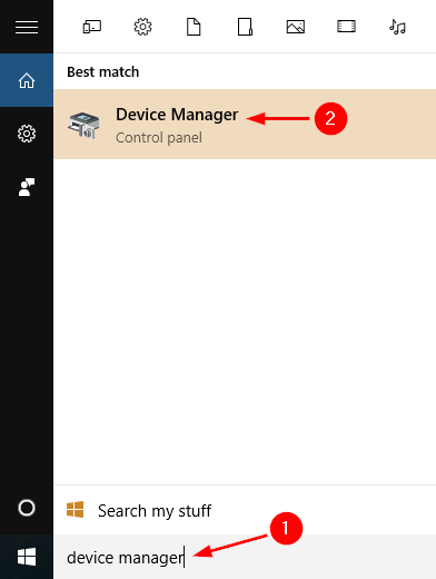 单击 Windows 10 任务栏上的 Cortana 搜索框,输入装置经理并按 Enter 键。 (如果您运行的是 Windows 7,请键入装置经理在开始菜单搜索框中,然后按 Enter。)