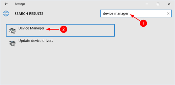 类型装置经理单击右上角搜索框并按 Enter 键,即可从搜索结果中访问“设备管理器”。