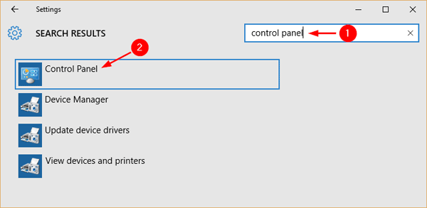 单击任务栏上“开始”按钮附近的 Cortana 搜索栏。类型控制面板并按 Enter 键。