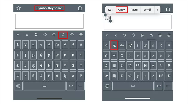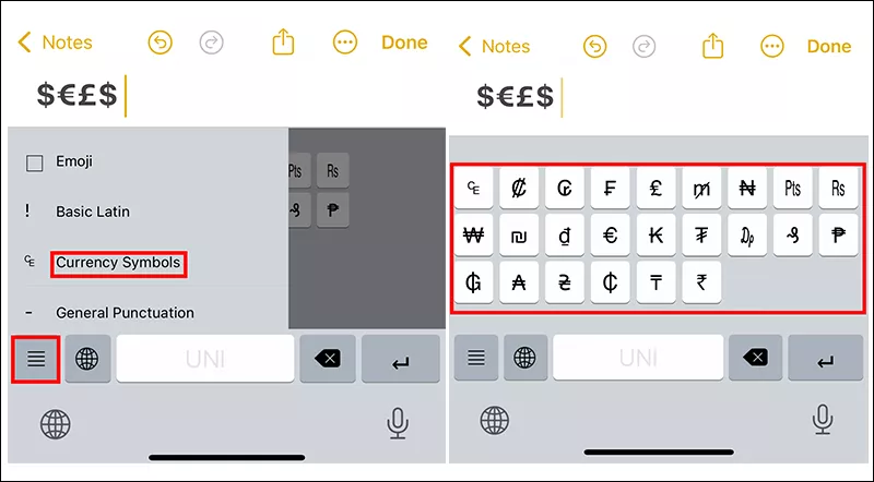 尖端:您还可以使用符号键盘插入各种货币符号,然后将其复制并粘贴到笔记中。