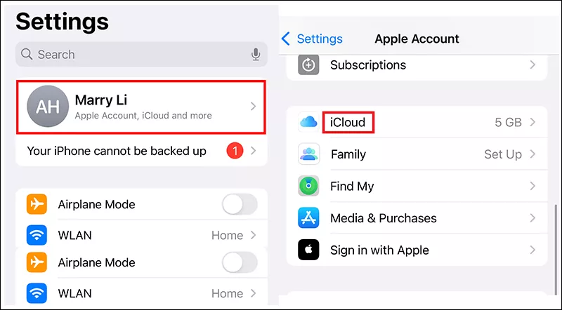 步骤一:要检查您的笔记是否与 iCloud 同步,请转到 iPhone设置>[你的名字]>iCloud。