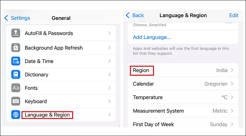 步骤一:打开“设置”应用程序。向下滚动到一般的>语言及地区。