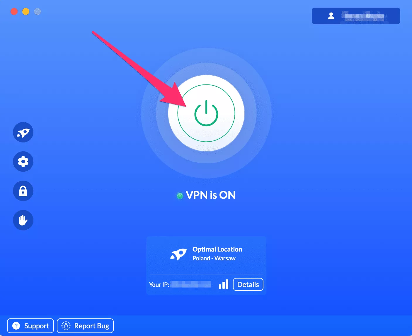- 打开VPN。它将为您提供最佳的 IP 地址位置。现在您可以上网冲浪,而不会被烦人的广告分散注意力。