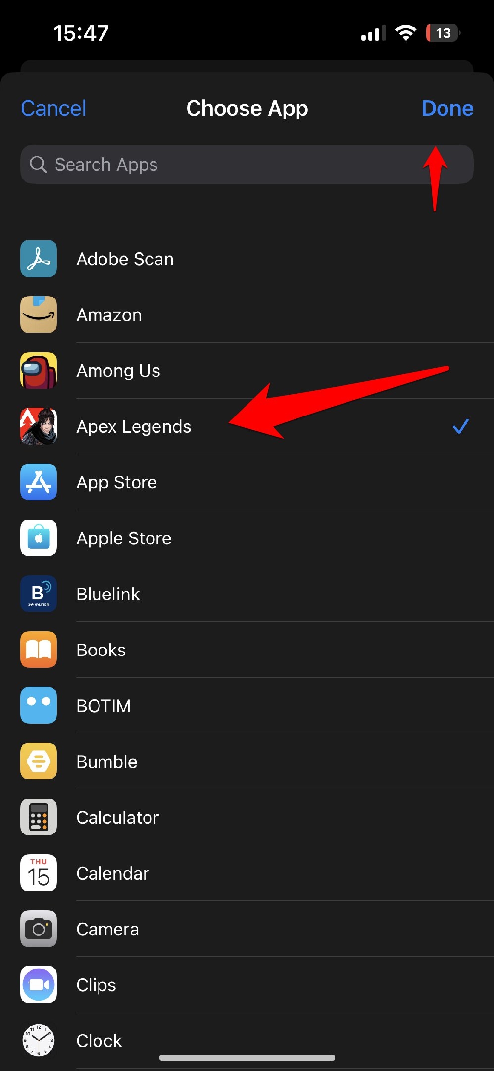3. 单击选择,然后从列表中向下滚动到应用程序,从列表中选择您想要的任何游戏,然后单击下一步。例如,我们选择了《Apex Legends》。