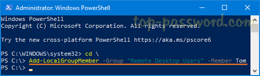 Add-LocalGroupMember -Group "Remote Desktop Users" -Member "UserName"