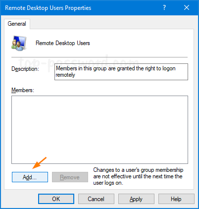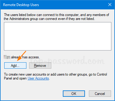- 当“远程桌面用户”对话框打开时,单击添加。
