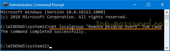 net localgroup "Remote Desktop Users" "UserName" /add