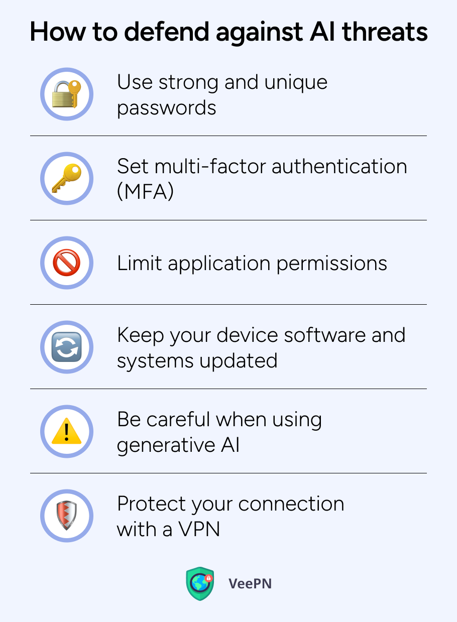以下是 VeePN 提供的针对 AI 网络威胁的保护措施: