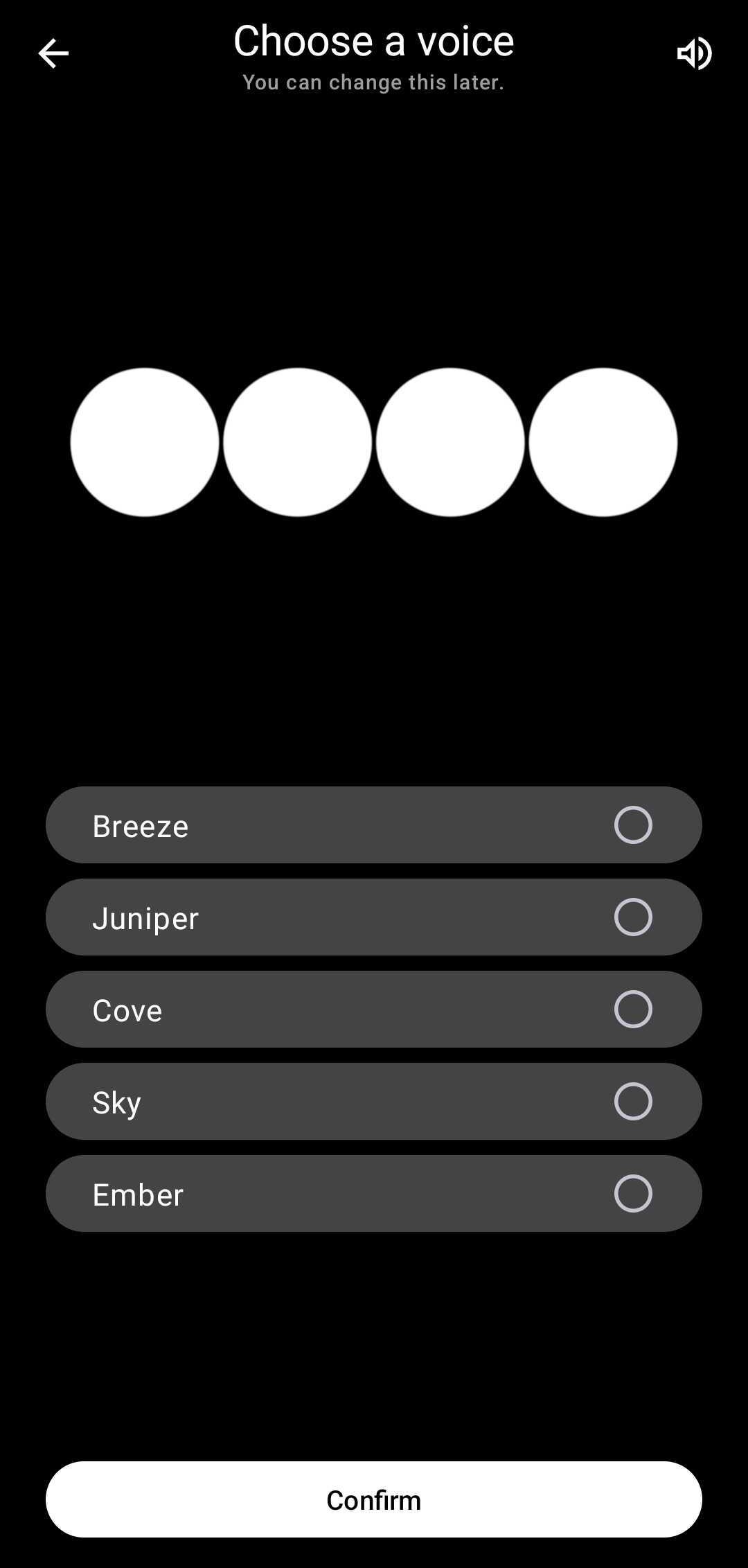 - 轻敲 '嗓音'。从五个选项中选择您喜欢的声音,然后点击“确认.'您也可以稍后更改此设置。