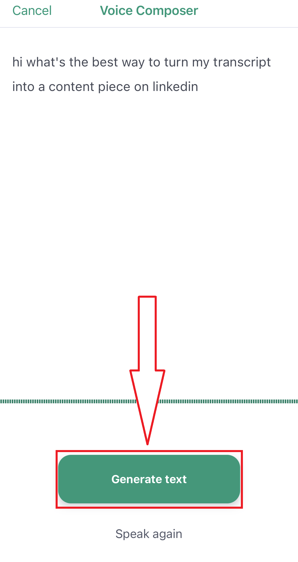- 说话后,点击生成文本按钮将您的口头内容转换为文本。