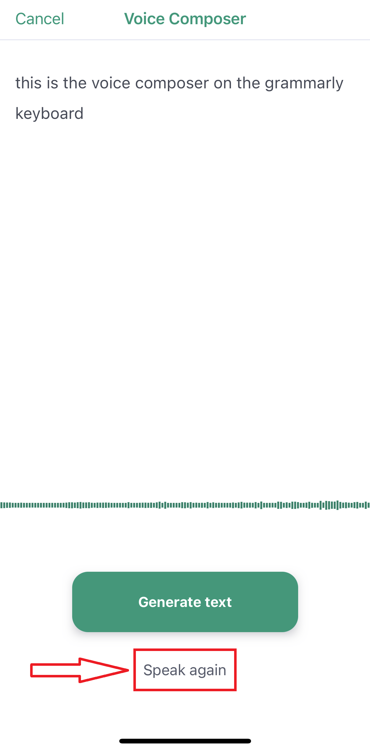 - 从我的语法选项卡,点击说话屏幕底部的按钮可激活 Voice Composer。