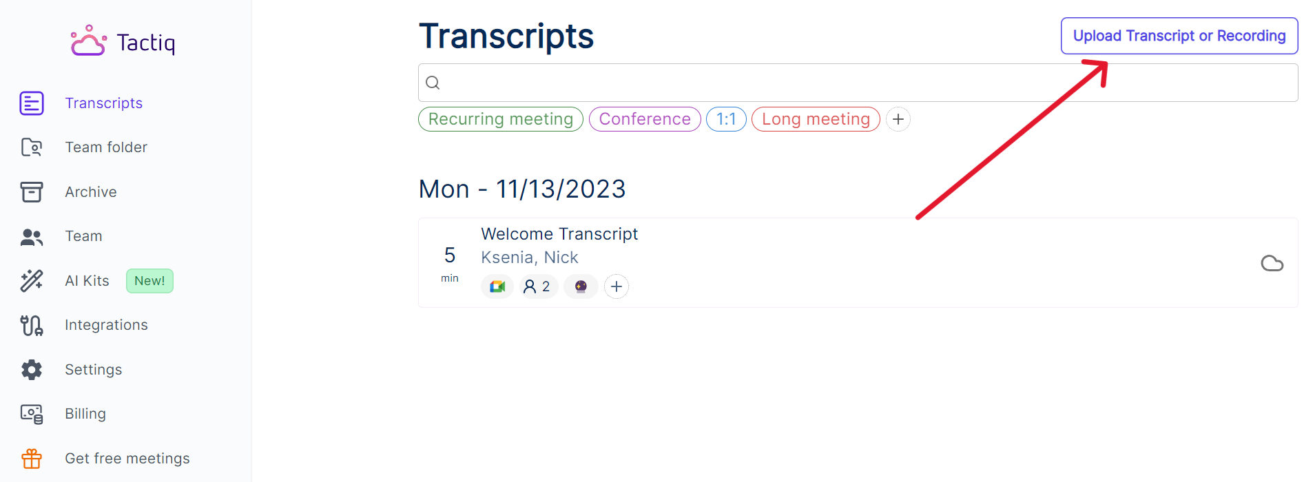 您可以使用 Taactiq 的上传功能将任何录制的讨论转换为书面文本。方法如下: