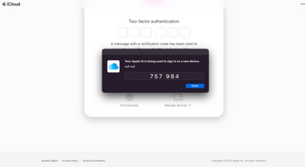 步骤2:然后,验证码将出现在您的 iPhone 或与您的 Apple ID 关联的任何设备上。将显示的代码复制并粘贴到搜索栏中,然后单击相应的图标继续。