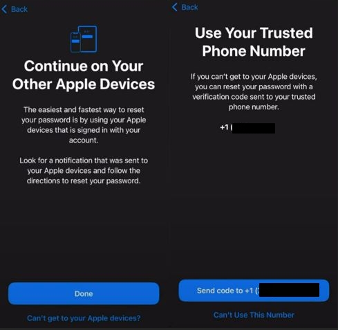 如果您仍然可以访问受信任的电话号码或电子邮件,或者至少是受信任的 iDevices,事情就会变得更容易。您可以按照以下任意方式完成密码重置: