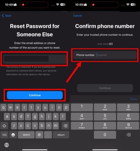 步骤 3.输入您要恢复的 Apple ID。然后,Apple 会要求您输入与该 ID 关联的电话号码或电子邮件地址。填写缺失的数字并点击继续。