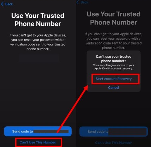 步骤2。Apple 将显示您信任号码的最后两位数字。如果看起来很熟悉,请点按发送代码接收六位数的验证消息。