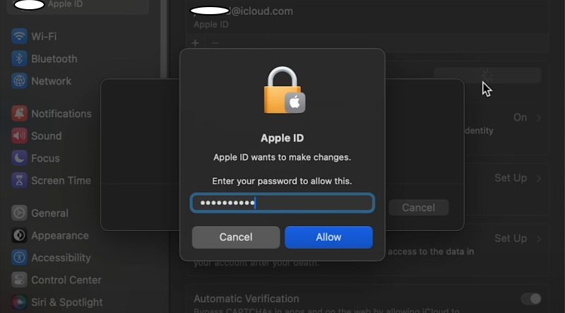 步骤 3.将出现一个小对话框,询问您的 Mac 密码。输入它并单击允许以确认您的身份。