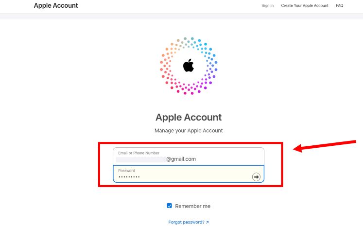 步骤2。输入与您的 Apple ID 关联的电子邮件或电话号码,然后输入您的密码。要继续,请按输入或返回钥匙。