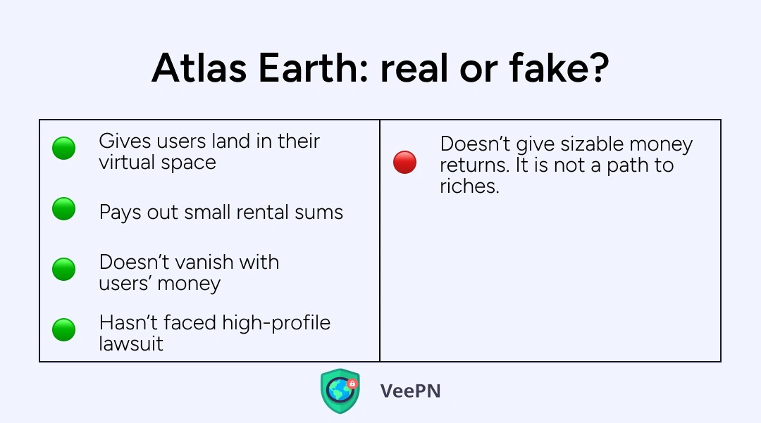 拥有数字地块通常是安全的。但是,请注意 Atlas Earth 帐户中附加的登录信息和付款详细信息。骗子可以通过他们的报价迫使您购买更多土地。因此,最好只使用官方渠道,并使用文章中概述的保护方法。