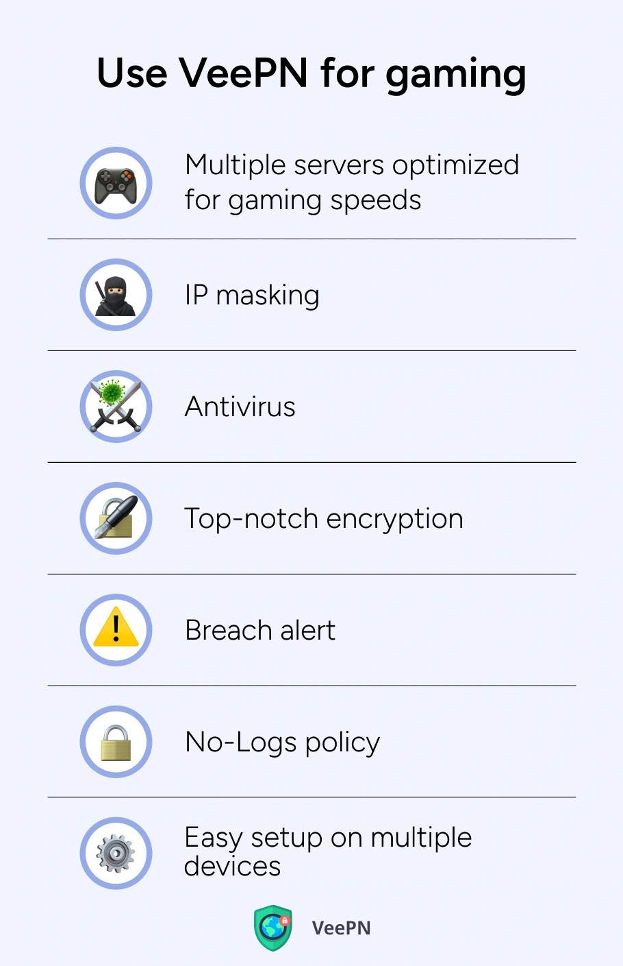 但是该选择哪个 VPN 提供商,尤其是当有数十个可用的 VPN 提供商时? VeePN 可能正适合您,因为它可以保护您的隐私并为游戏提供高连接速度。