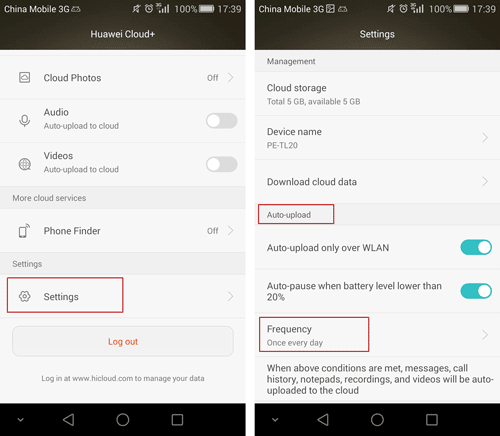 此外,你还可以去设置在华为云+上,确认如何以及Android 数据多久同步一次。