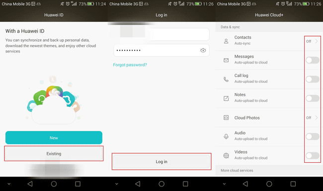 第5步:在华为Cloud+中,选择需要同步到云端的数据类型。然后当您在Android手机上操作时,所有这些数据都会备份到华为Cloud+。