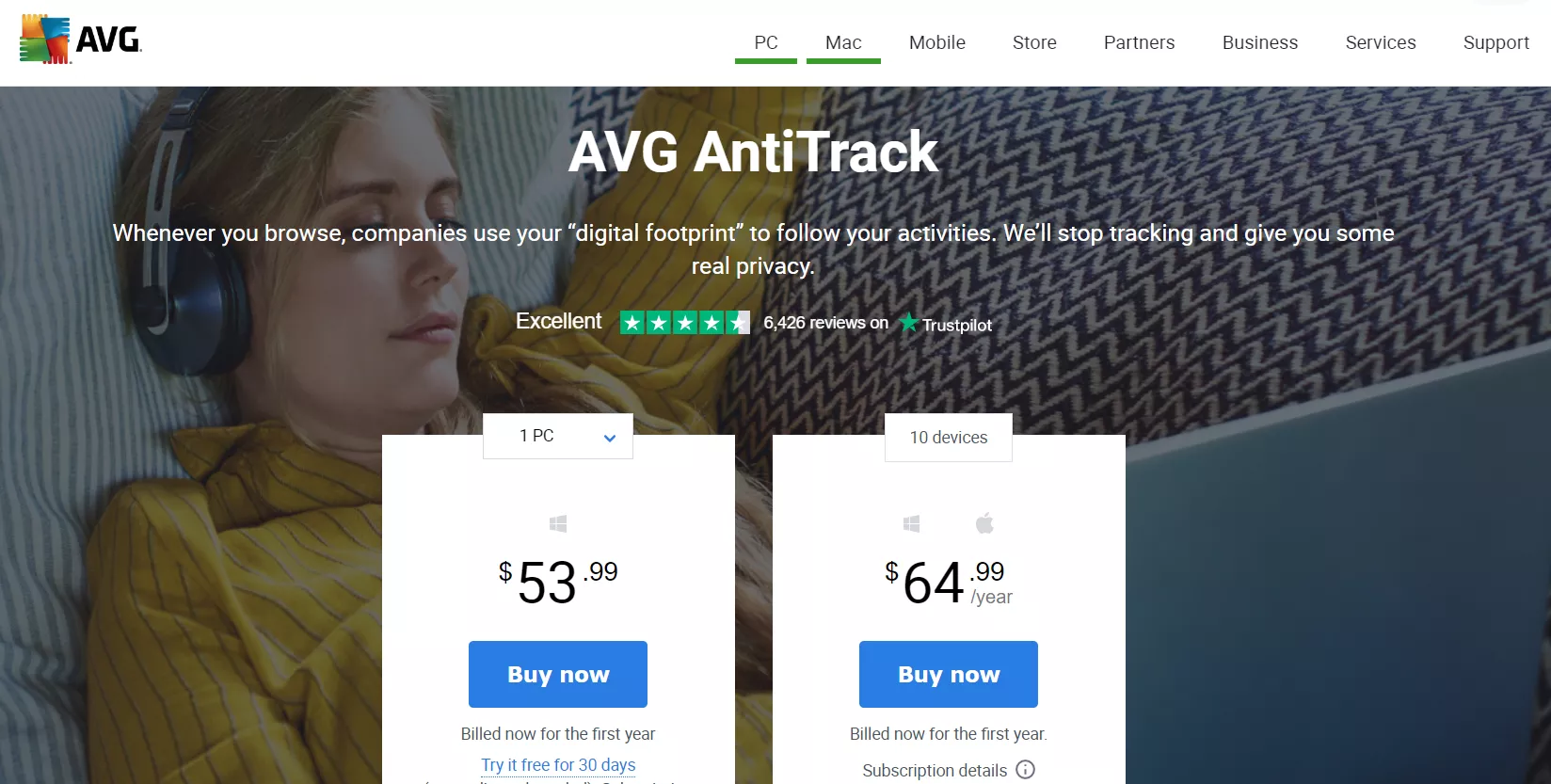 在 TrustPilot 上,AVG AntiTrack 拥有超过 6,400 条评论,平均评分为 4.3 星。