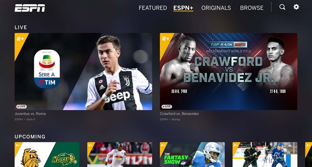 ESPN+ 为体育迷提供每日直播赛事,尤其是 NHL 和 MLB 比赛。它还为 MMA 支持者提供观看 PPV UFC 比赛的独家访问权。您可以在各种设备上观看 ESPN+ 比赛,包括 Chromecast、PS5 和 Roku。