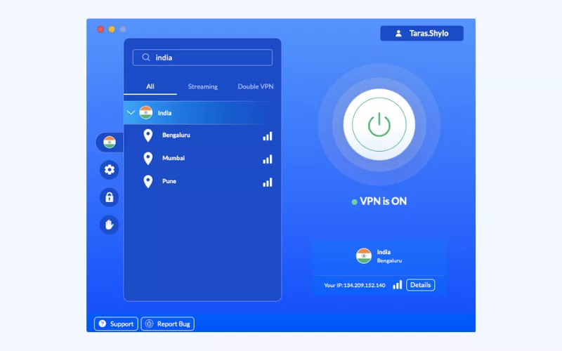 - 连接到印度IP地址。选择印度首选的位置以访问您的Hotstar帐户。可用的选项包括班加罗尔,孟买和浦那。
