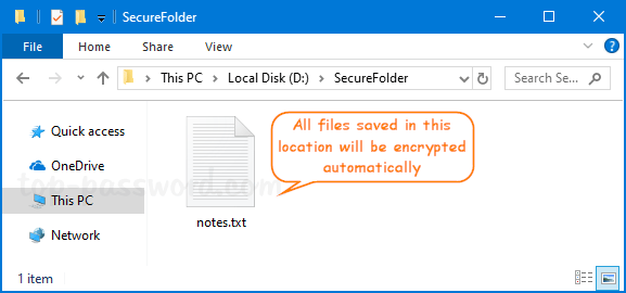 如果您使用记事本打开安全文件夹内的加密 .txt 文件,该文件将被透明解密,无需用户交互,因此您可以再次查看纯文本。