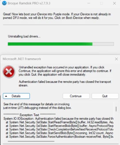 Broque Ramdisk Pro 依赖越狱、DFU 漏洞、临时文件注入和第三方脚本,这些通常会导致 iPhone 不稳定。许多用户报告在使用 Broque Ramdisk Pro 后遇到这些问题,包括启动循环、恢复失败以及绕过后突然出现故障。