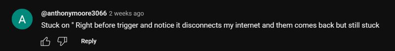 翻译:有报道称“卡在触发前”,然后互联网断开且无法恢复。