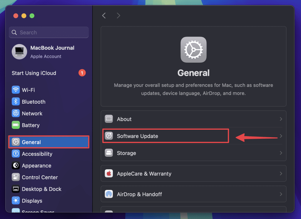- 操作系统版本:确认 MacBook 运行的是最新的 macOS 或至少是仍受支持的操作系统。您可以通过访问来检查这一点关于本机。如果它的版本非常旧,它可能无法支持新的应用程序或安全更新。
