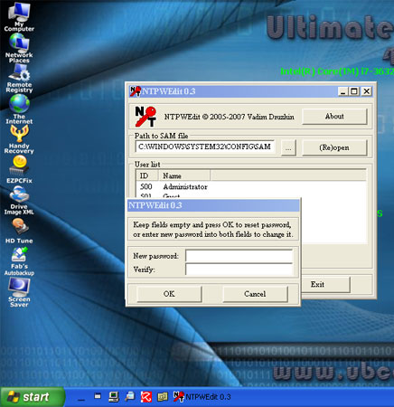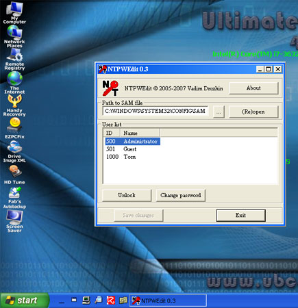 计算机被锁定但需要能够以本地管理员身份登录?您需要做的是设置一张 UBCD4Win(也称为 Windows 终极启动 CD)Live CD,用它启动计算机并运行 NTPWEdit 工具来清除忘记的 Windows 密码。