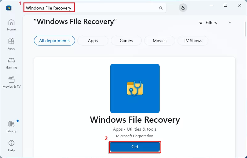 步骤一:启动微软商店。输入Windows 文件恢复在搜索栏中,然后单击