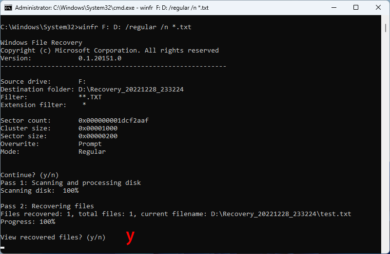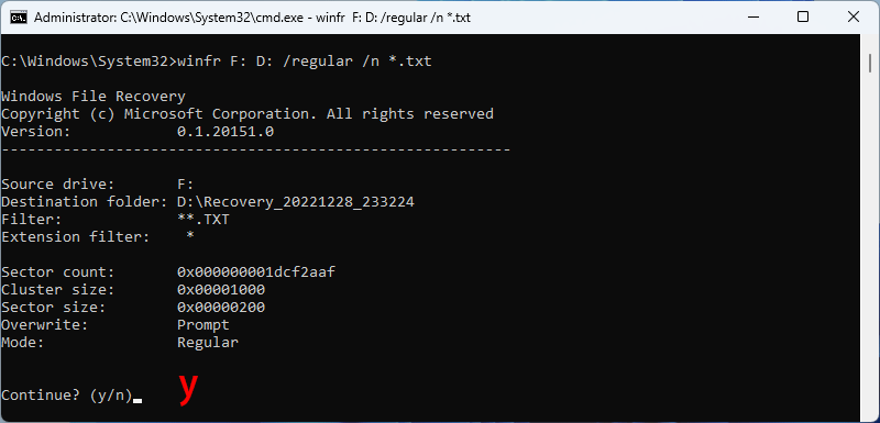 笔记:该命令表示将从F盘恢复所有扩展名为“.txt”的文件