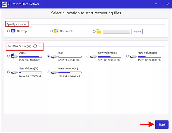 步骤一:启动软件并选择已删除文件的驱动器,