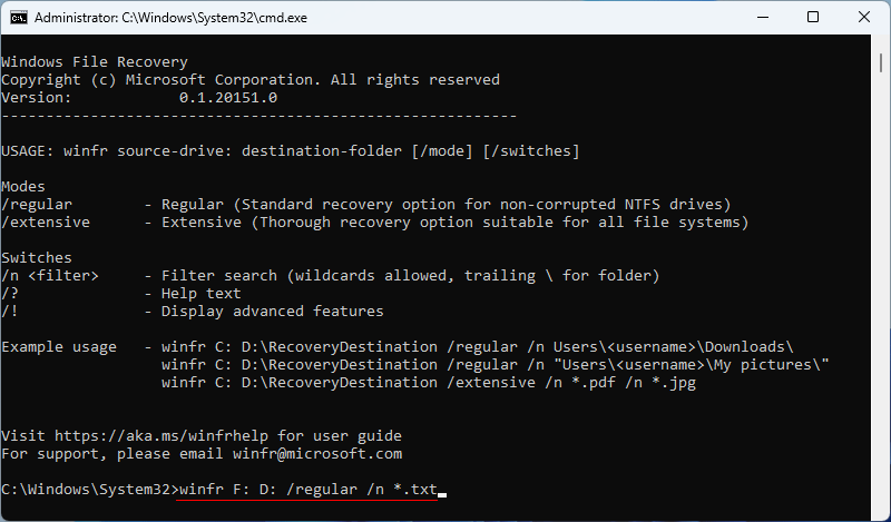 这Windows 文件恢复app 是一个命令行工具,可让您恢复已删除的文件