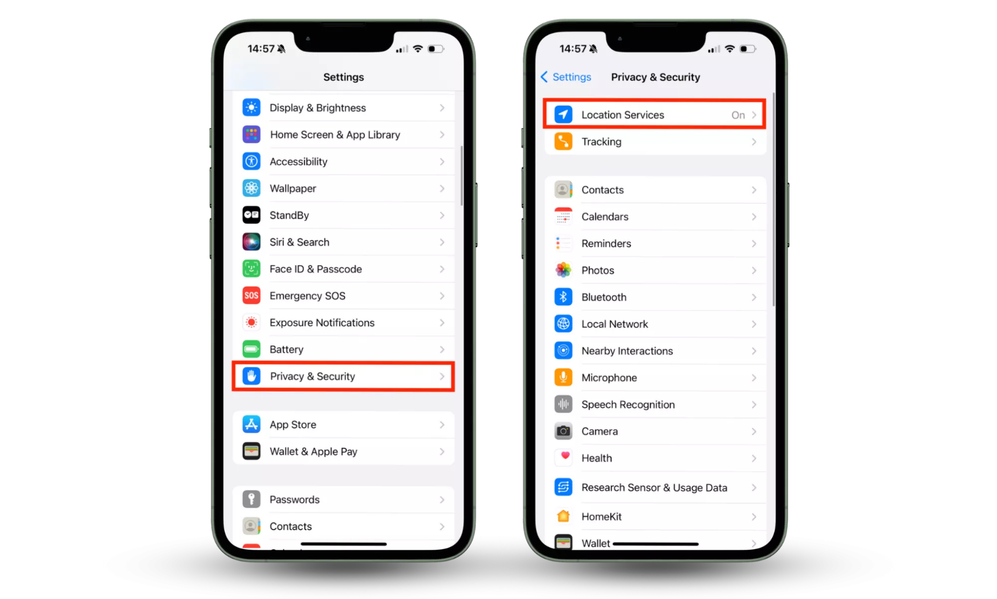 步骤 1-2:转到“设置”中的“隐私和安全”,然后选择“位置服务”。