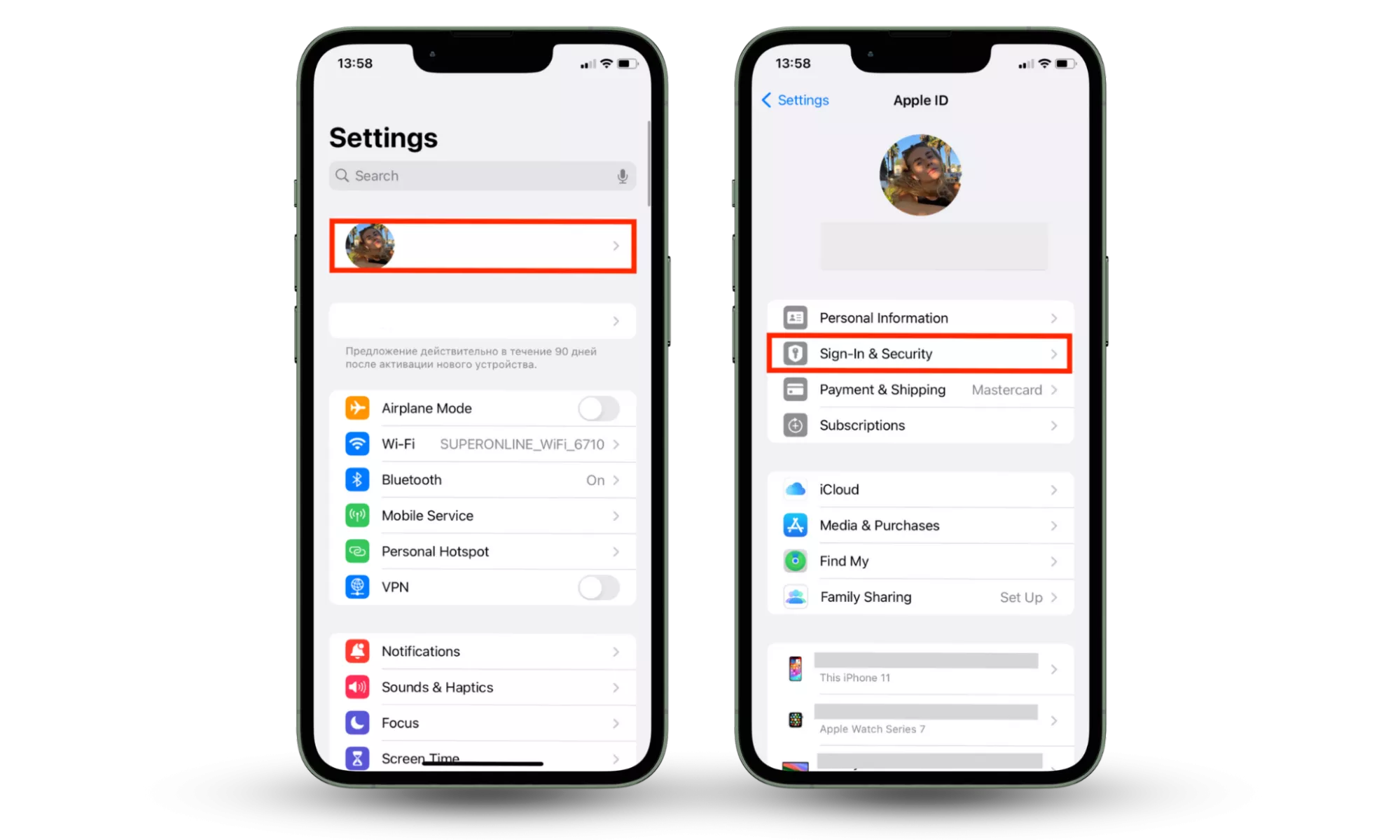 步骤 2-3:您的 Apple 帐户个人资料图片 > 登录和安全。