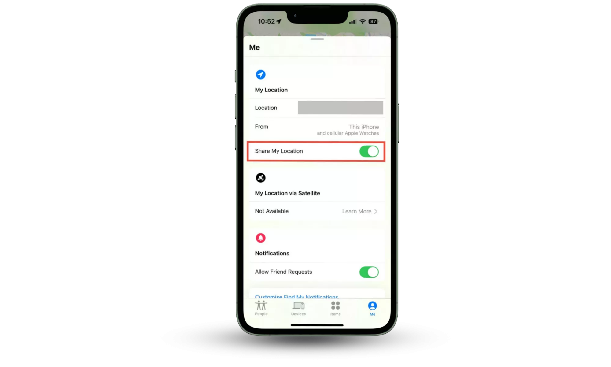 第 1 步:查找我的 > 我的 > 共享我的位置