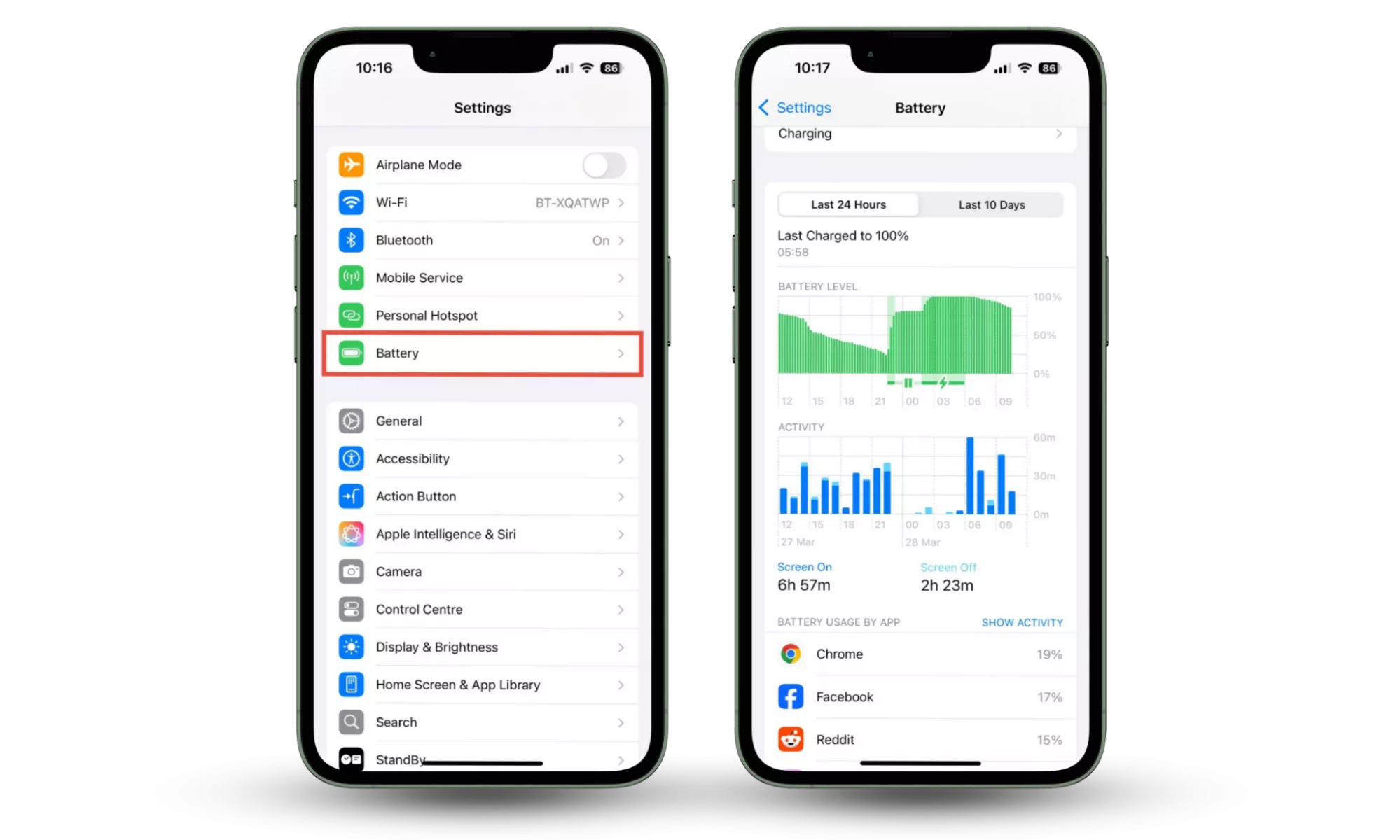 当您的手机不断检查和传输您的位置时,会耗尽电池电量。判断是否有人在跟踪您 iPhone 位置的一种方法是检查您的电池电量是否快速耗尽,以及哪些应用程序消耗了大部分电池电量。