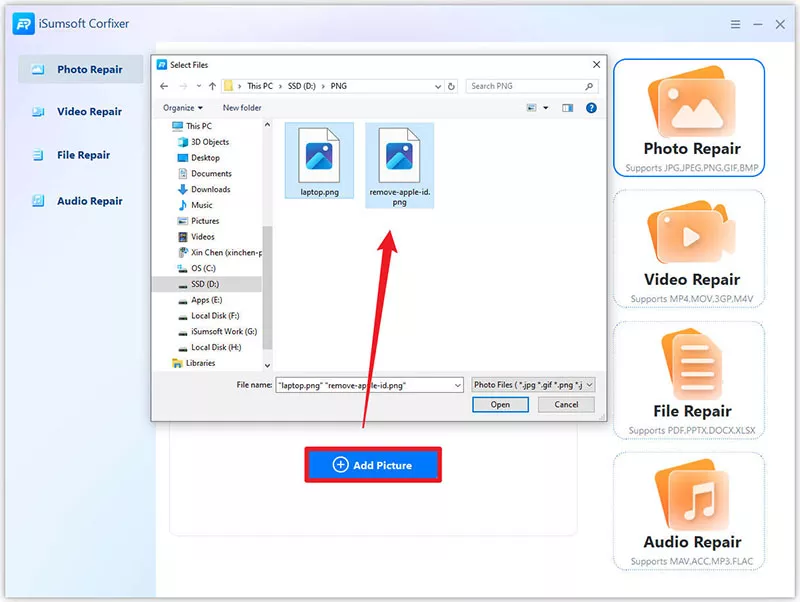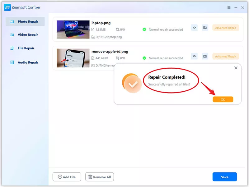 如果您的png文件仍然无法打开,则可能会损坏该文件。在这种情况下,使用ISOFT CORFIXER这样的文件维修工具是最简单,最有效的解决方案之一。