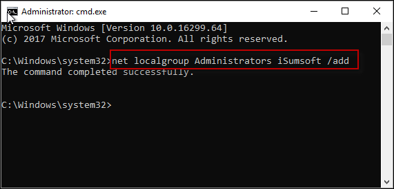步骤 3:登录后,管理员 CMD 窗口将出现在您面前。在CMD窗口中输入net localgroup 管理员 Your_User_Name /add并按 Enter 键。代替您的用户名与您的用户帐户名。这会将您的用户帐户添加到管理员组;也就是说,这会将您的帐户类型更改为管理员。