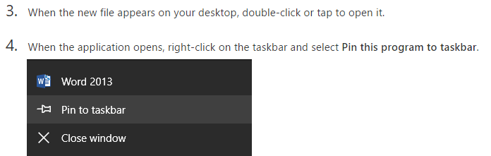 3. 要更快地打开 Office 应用程序,请将它们固定到“开始”屏幕或桌面上的任务栏。右键单击每个应用程序的名称并选择固定到开始或者固定到任务栏。