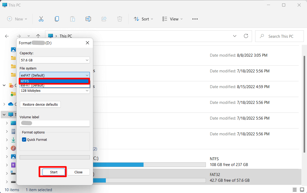 Windows 支持 NTFS、FAT32 和 exFAT 文件格式。使用不受支持的文件系统格式化的任何存储介质或分区都将显示为 RAW 或损坏的驱动器。您可以更改文件格式以使该设备可用于您的 Windows 计算机。如何更改 USB 闪存驱动器文件格式: