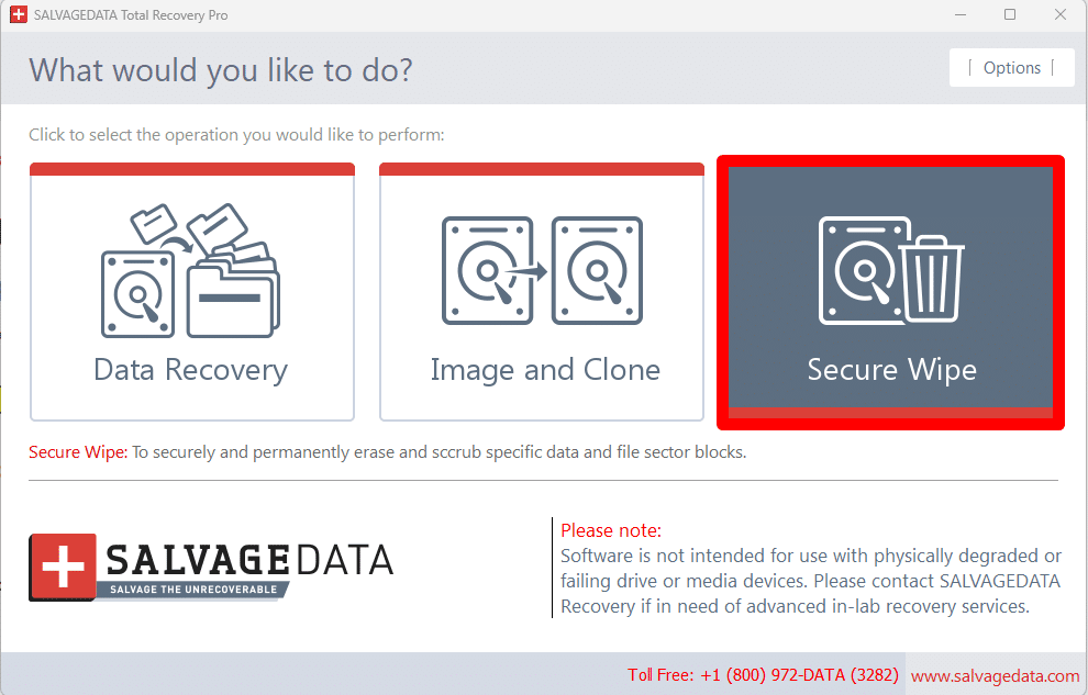 SalvageData 免费软件为您提供了安全擦除内部和外部存储设备(包括闪存驱动器)的选项。要使用它,请下载 SalvageData 软件并双击它以执行安装程序。