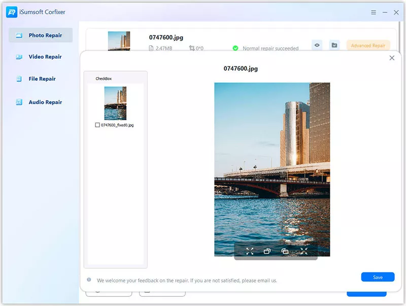 对于处理拒绝在任何应用程序中打开的损坏的JPG文件的用户来说,ISOFT CORFIXER是一个非常有效的解决方案。只需单击几下,您就可以恢复原始图像质量并再次访问照片。