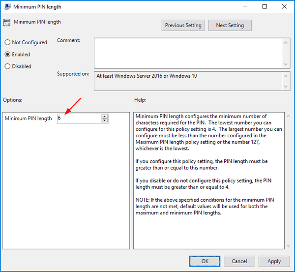 更改 Windows 10 中的 PIN 复杂性要求策略