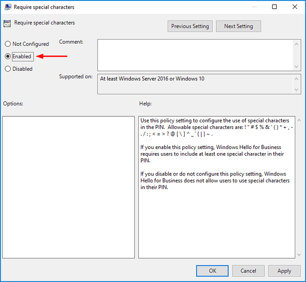 Computer Configuration > Administrative Templates > System > PIN Complexity如果您运行的是 Windows 10 周年更新(版本 1607)或更早版本,请导航至:
